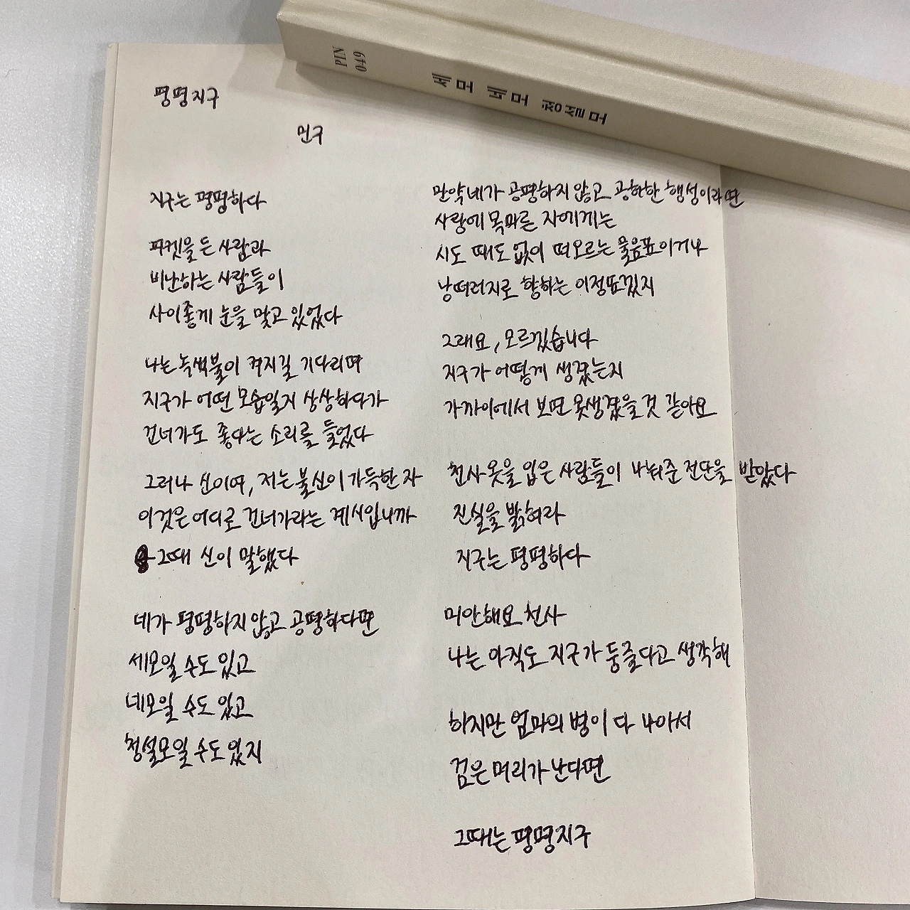 필사 두 번째 시: 「평평지구」