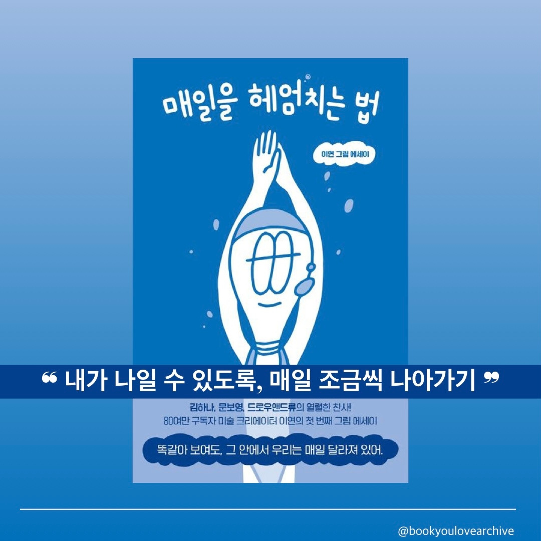 * 유튜브 구독자가 아니어서 사실 이연이 어떤 사람인지는 잘 모른다. 하지만 담담하게 자신의 이야기를 전하며 물 밑에 가라앉아 있는 이들이 바닥을 딛고 다시 떠올라 더 멀리, 꾸준히 헤엄칠 수 있도록 용기를 주는 듯한 글이 좋았다.