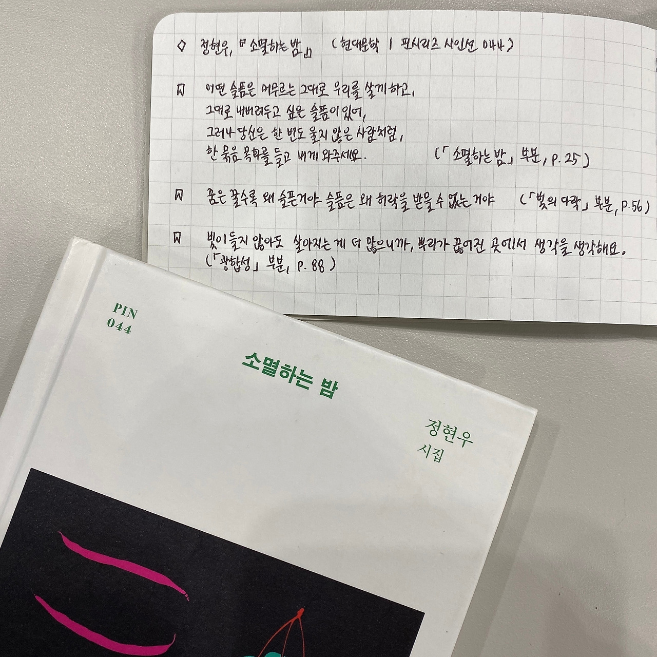 * 당신은 어떤 것이 ‘소멸하는 밤’을 보내게 될까. 겨울 내내 곱씹어 보고 싶은 그런 시집이었다. [23/12/28]