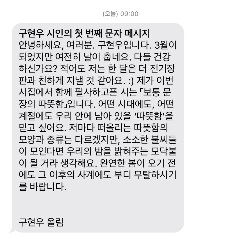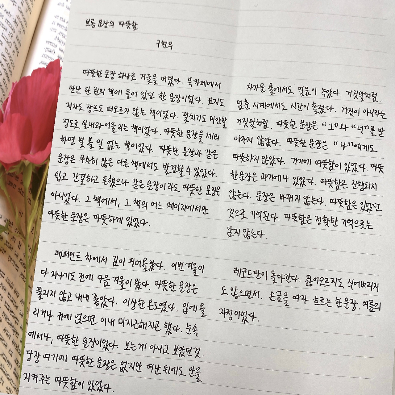 * 구현우 시인과 함께 하는 핀사단 필사 첫 번째 시는 「보통 문장의 따뜻함」입니다.