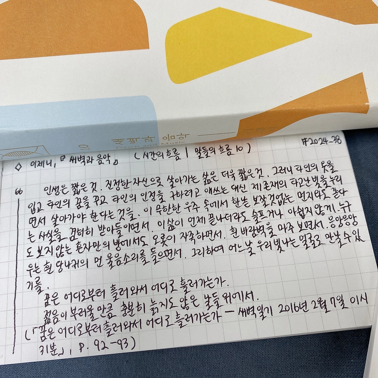 * 키워드: 새벽 | 음악 | 글쓰기 | 시론 | 기억 | 마음 | 고독 | 사랑