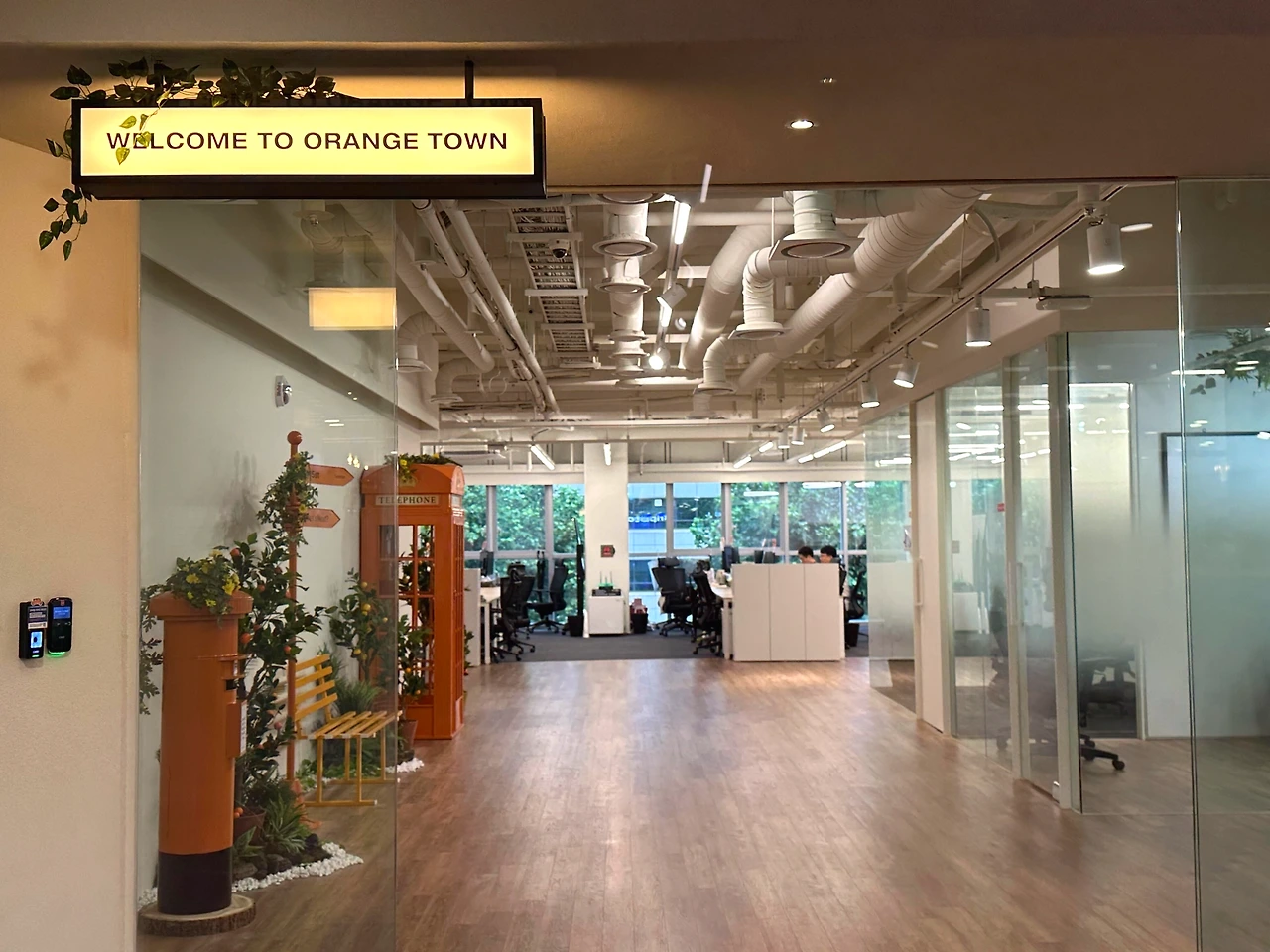 새로운 사무실의 명칭은 '오렌지 '타운'으로 정했습니다. 우리의 문화와 일하는 방식이 담긴 '818 오렌지 마을' 세계관은 그대로 유지하되, 물리적인 공간의 명칭은 '오렌지 타운'인 것이죠. 이 공간에 새로운 명칭을 지어줄 만큼 의미를 부여하는 이유는 부스터스의 사업 영역의 확장과 구성원의 증가로 사업 규모에도 변화가 생겼음을 강조하기 위함이에요.
