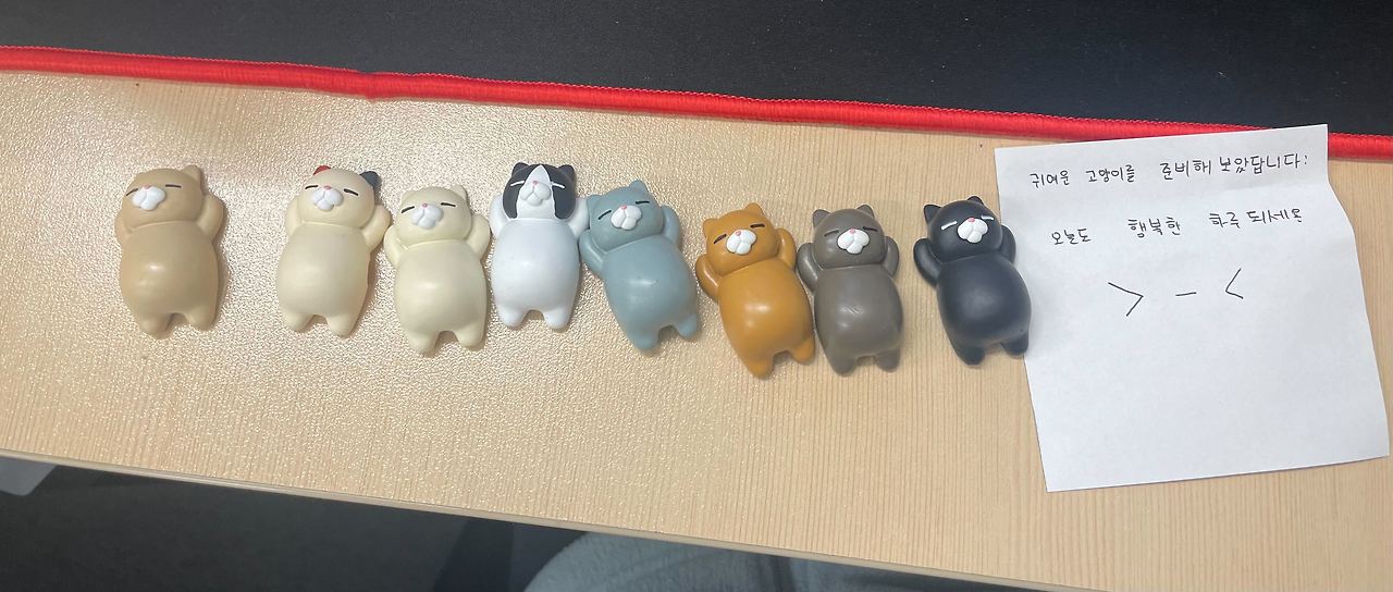 게임 공지 후 모두가 이름표를 뽑으러 한 곳에 모였습니다. 각자 설레는 마음으로 한 달 동안 행복을 전할 부리또의 이름이 적힌 종이를 뽑았고, 본인의 이름을 뽑은 경우에는 다시 한번 뽑을 기회를 드렸습니다. 게임이 시작된 바로 다음날부터 익명의 부리또로부터 선물을 받는 분들을 확인할 수 있었습니다. 자리에 몰래 찾아와 선물을 두고 가기도 하고, 누군가에게 부탁해 선물을 전달하기도 하고, 또 사무실 곳곳에 'OOO님에게 전달해 주세요'라고 적힌 메모를 남겨 정체를 끝까지 숨기기도 했습니다.