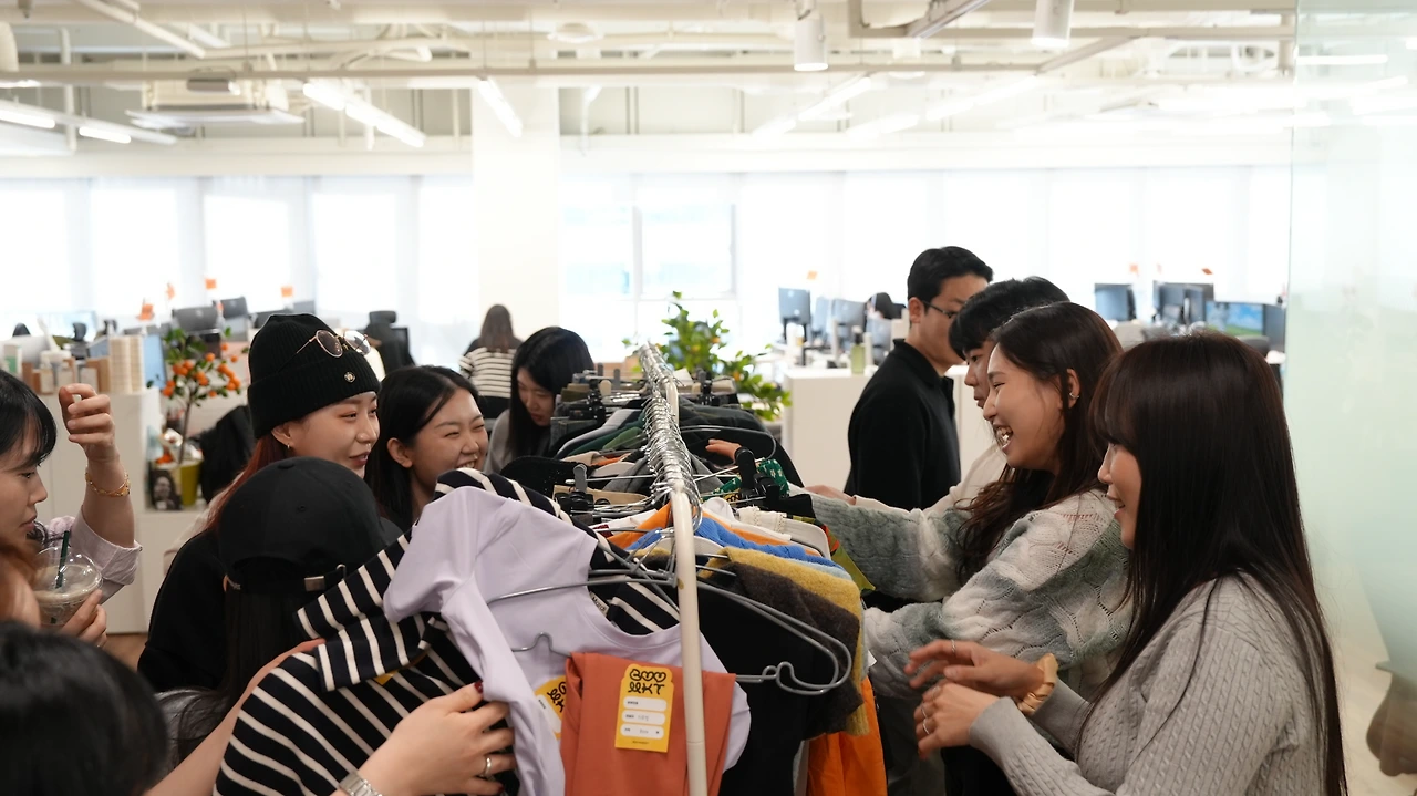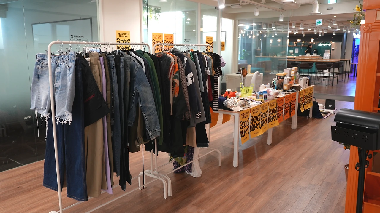 부마켓의 최고 인기 품목은 단연코 의류였습니다. 특히 부스터스의 옷잘알 CMO 진영님이 좋은 옷들을 많이 가져와 주셔서 구성원들 사이에 관심이 엄청났는데요. 직접 옷 추천도 해주시고 영업도 하시며 이날 최다 매출을 기록하셨습니다. (사실 CB팀의 간절한 부탁에 눈물을 머금고 옷을 가져오셨습니다.. 감사합니다..!)