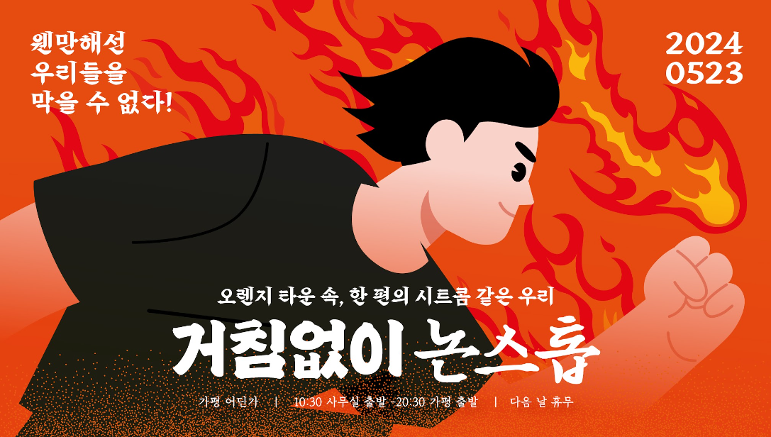 쏟아지는 폭우 속에서 맞이한 작년 부스터스의 첫 번째 워크숍에 이어, 햇빛 쨍한 날 우리의 두 번째 워크숍을 맞이하게 되었습니다. 날씨가 조금 덥긴 했지만 이번 워크숍의 콘셉트인 '거침없이 논스톱'에 걸맞게 한 편의 시트콤 같은 즐거운 시간을 보내고 왔습니다.