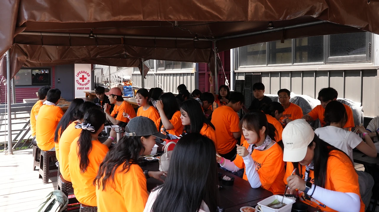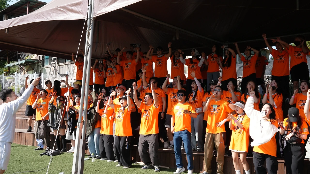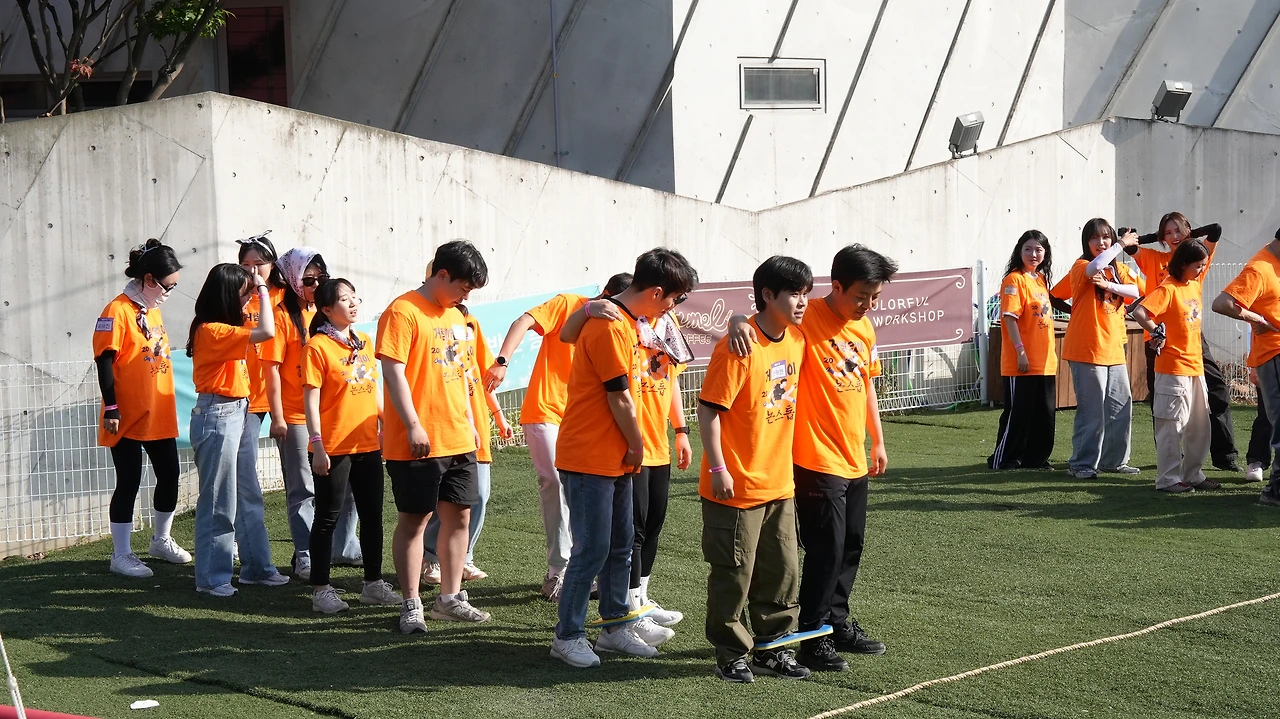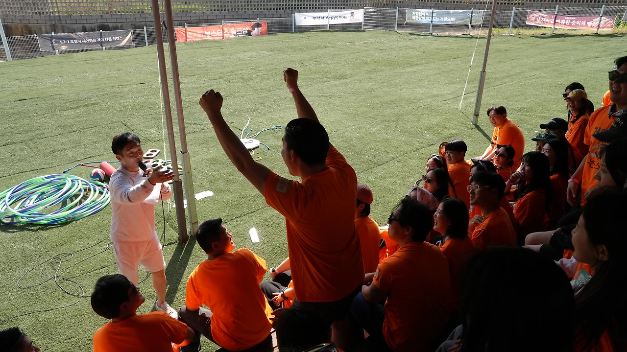 부스팅데이가 끝난 후엔 다시 잠시 휴식 시간을 가지고, 이번 워크숍의 하이라이트라고 할 수 있는 운동회를 위해 운동장에 모였습니다. 날이 많이 더워 천막 아래 앉아 레크리에이션 시간을 먼저 가졌어요. 레크리에이션이라기엔 다들 에너지가 어마어마해서 벌써부터 운동회가 시작된 것 같았습니다.