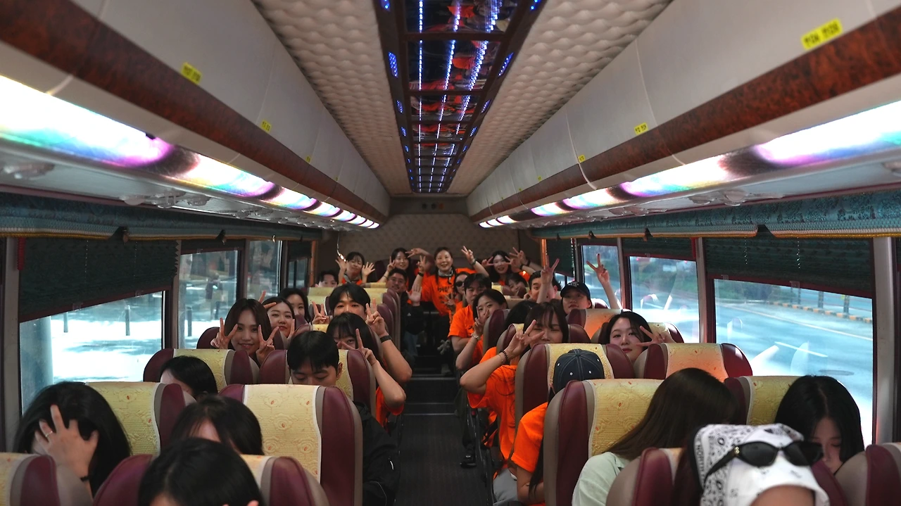 올해도 안전을 위해 사무실에서 먼저 모여 두대의 대형 버스로 다 같이 이동했습니다. 작년에도 두대의 버스로 이동을 했는데, 달라진 점은 50명대였던 인원이 올해는 약 80명으로 늘어나 버스에서 빈자리를 찾아보기 어려웠다는 점이었습니다. 북적북적하게 신나는 음악을 즐기며 이동하니 한 시간이 금방 지나 목적지에 도착했습니다.