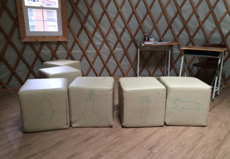 작년 가을, 학교 뒷편의 게르 안에 누군가 남성의 음경을 깍두기(베개?)에 그려놓는 사건이 발생했다. 심지어 이 그림이 게르 외의 학교 곳곳에서 발견되며 문제는 점점 심각해졌다. 사건에 대한 해석은 크게 두 가지였다.