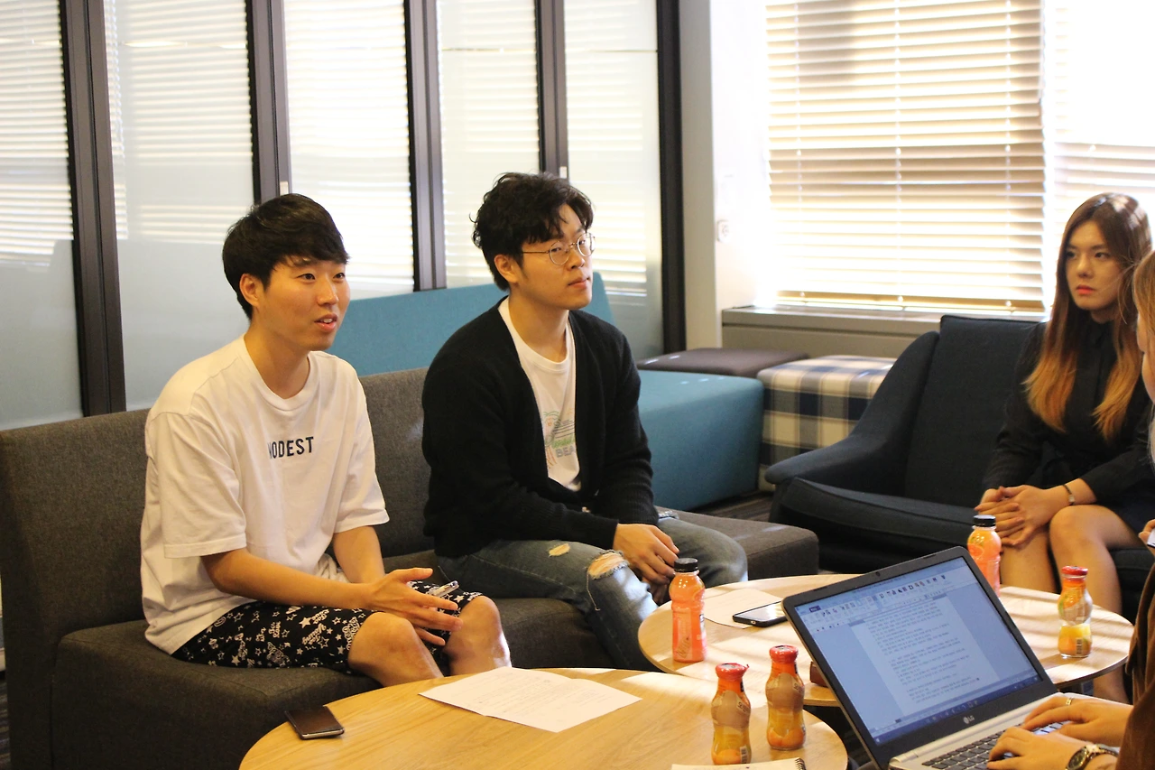 다들 영어 이름을 써요. 영어 문화는 대한민국과 다르게 존댓말, 반말의 구분이 없잖아요. 나이나 직급 때문에 서로 말을 못 할 경우가 있는데 영어를 쓰면 그런 일이 줄어요. 대표님한테 "맥스!"라고 부르고 실장님한테 "케이!"라고 부르면 되는 거죠. 이런 수평적인 관계에서 보다 자유롭게 이야기를 나눌 수 있어요.