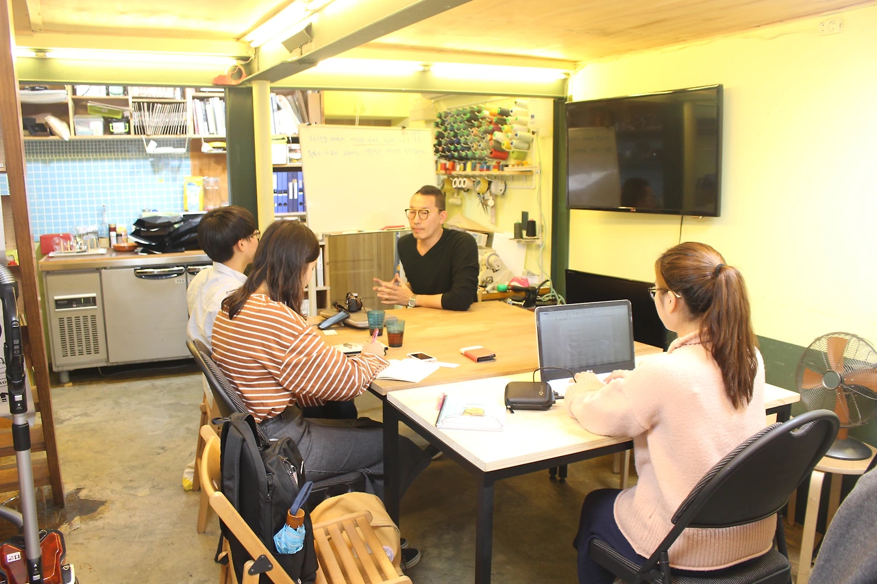 무려 40분이라는 시간을 지각한 만큼, 죄송한 마음이 가장 컸다. 그럼에도 에어컨을 틀어주시면서 "어차피 5시에 퇴근할 거예요ㅎㅎ"라며 정신없던 우리를 배려해주시는 홍성재 대표님께 너무나 감사했다. 많이 급했고 부족했지만 시간은 상대적이라고 말씀하시며 타이트하게 진행해보자는 대표님의 말씀을 따라, tight하게! 인터뷰를 시작했다.