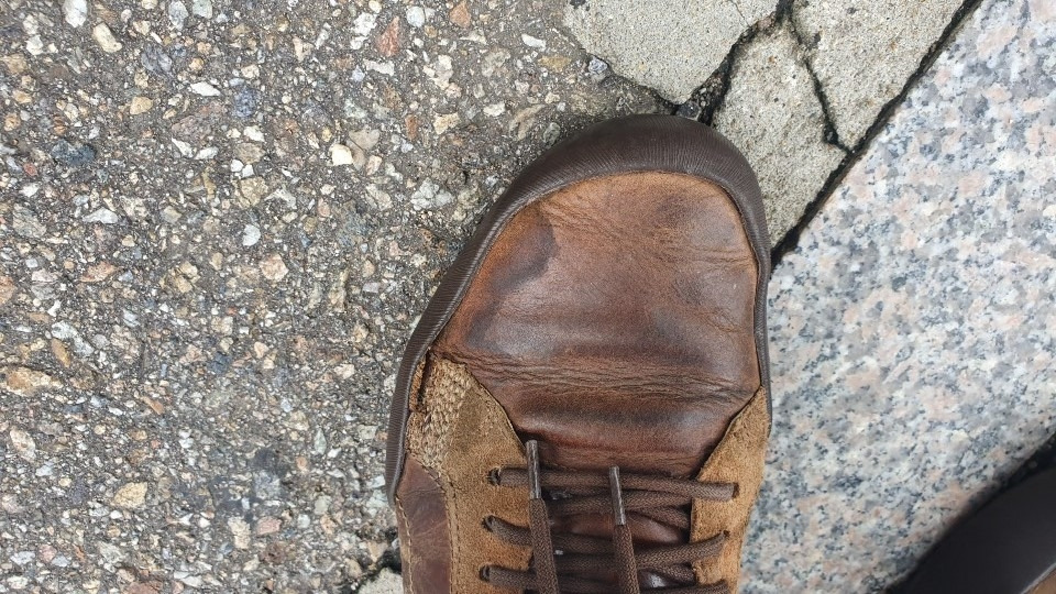 아침에 길을 걷다가 바닥이 너무 미끄럽다는 생각이 들어 바닥을 살펴보니, 바닥이 닳다 못해 아예 갈라져 버렸다는 것을 알게 되었습니다.