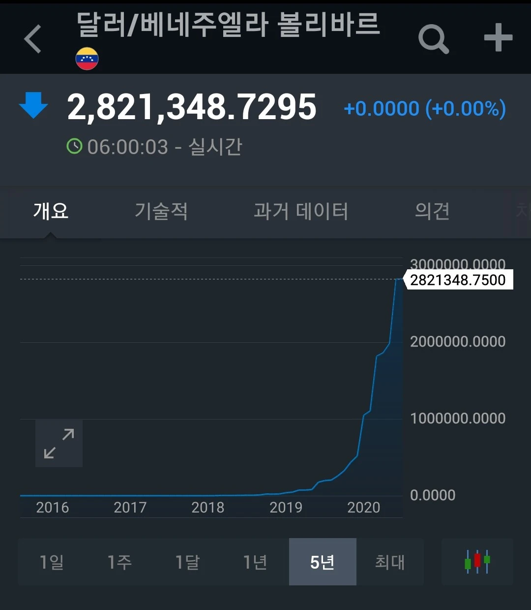 아주 극단적인 예이기는 하지만 베네수엘라의 화폐인 볼리바르의 달러 대비 환율을 보면 이를 어렵지 않게 이해할 수 있습니다.