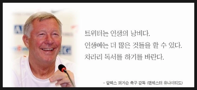 잉글랜드 중부의 공업도시 맨체스터(Manchester)를 전세계의 '핫 플레이스'로 만든 일등공신은 바로 맨체스터 유나이티드(이하 맨유)이다. 그리고 맨유를 잉글랜드를 넘어 글로벌 브랜드로 키운 이가 Sir Fergie, 알렉스 퍼거슨(Alex Ferguson)이다. 이 거장의 존재가 한국에서 해외 축구 매니아들을 넘어 더 많은 사람에게 친숙하게 알려진 것은 두 번의 계기를 통해서였는데 첫번째는 2005년에 있었던 박지성의 입단이었고 두번째는 2011년에 있었던 그 유명한 '트위터는 인생의 낭비이다' 발언이다(참고로 퍼거슨 감독의 발언 원문은Twitter is 'a waste of time. Go to the library and read a book instead' 이며 말 그대로 '시간 낭비'라는 정도의 의미라는 게 합리적인 해석이다. '인생의 낭비'라고까지 하기엔 다소 와전된 측면이 있음을 밝힌다)