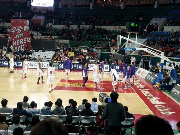 학생체의 수용 인원은 6200여석으로 이웃한 잠실체육관의 13500여석의 절반에도 미치지 못한다. 하지만 오히려 그 아담한 사이즈 덕분에 보다 가까이에서 생생히 경기를 지켜본다는 느낌이었다. 3층이었지만 좌석 앞에 긴 테이블이 놓여있어 개인 소품들을 올려놓을 수 있었던 것도 또 다른 행운이었다. 게다가 베이지색 플로어와 깔맞춤인 화사한 조명 덕분에 스포츠 경기라기보다는 한 편의 뮤지컬을 보는 듯한 즐거운 착각에 사로잡히기도 했다.