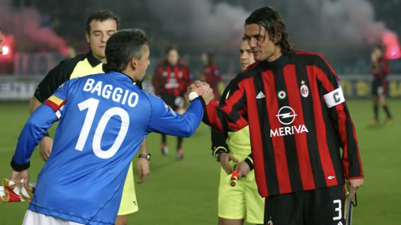 열성 축구팬이라면 아니 축구를 조금이라도 아는 사람이라면 어찌 이 투샷을 보고 뭉클하지 않을 수 있을까? 이탈리아를 넘어 전세계 축구의 전설이었던 두 스타가 맞잡은 두 손 너머로 상대에 대한 우정과 신뢰 그리고 존경이 느껴진다. 아주리(Azzuri, 이탈리아 국가대표 유니폼을 칭함)의 로베르토 바조(Roberto Baggio)와 로소네리의 파올로 말디니(Paolo Maldini)는 이 짧은 조우에서도 눈빛만으로 수많은 이야기를 나누었으리라