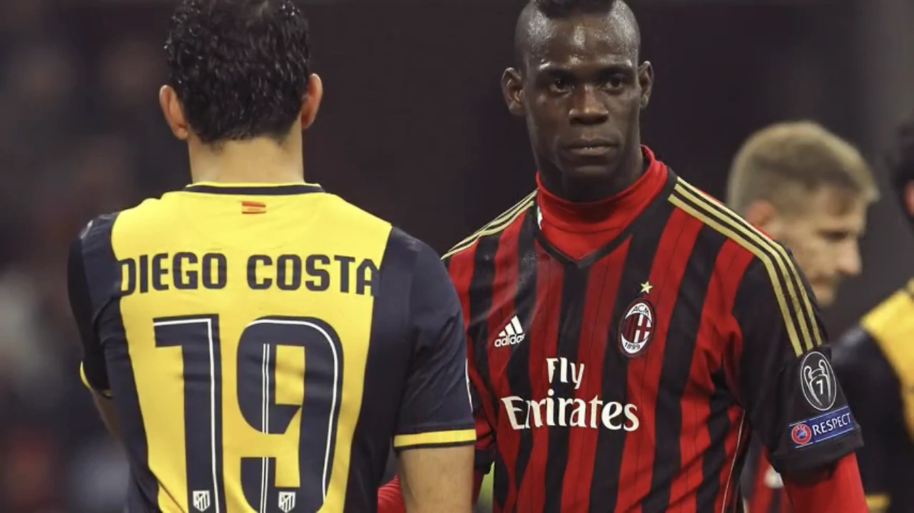 마리오 발로텔리(Mario Balotelli)는 역대급의 재능과 신체조건을 보유했지만 잠재력을 제대로 터뜨리지 못하고 여러 구단을 전전했다(물론 모두 명문 구단이었지만). 왼쪽 옆에 등돌린 스페인 국가대표 공격수 디에고 코스타(Diego Costa)의 모습도 보인다.