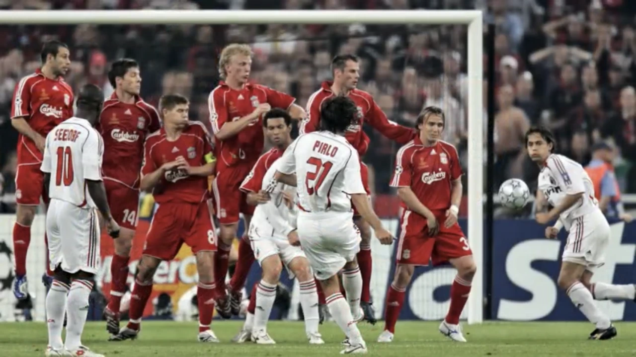 아테네의 영광을 만들었던 리버풀과의 2007년 챔스 결승 안드레아 피를로(Andrea Pirlo)의 프리킥 골 장면. 이 우승으로 밀란은 2년 전 이스탄불에서 리버풀에게 당했던 패배를 그대로 되돌려 주었다.