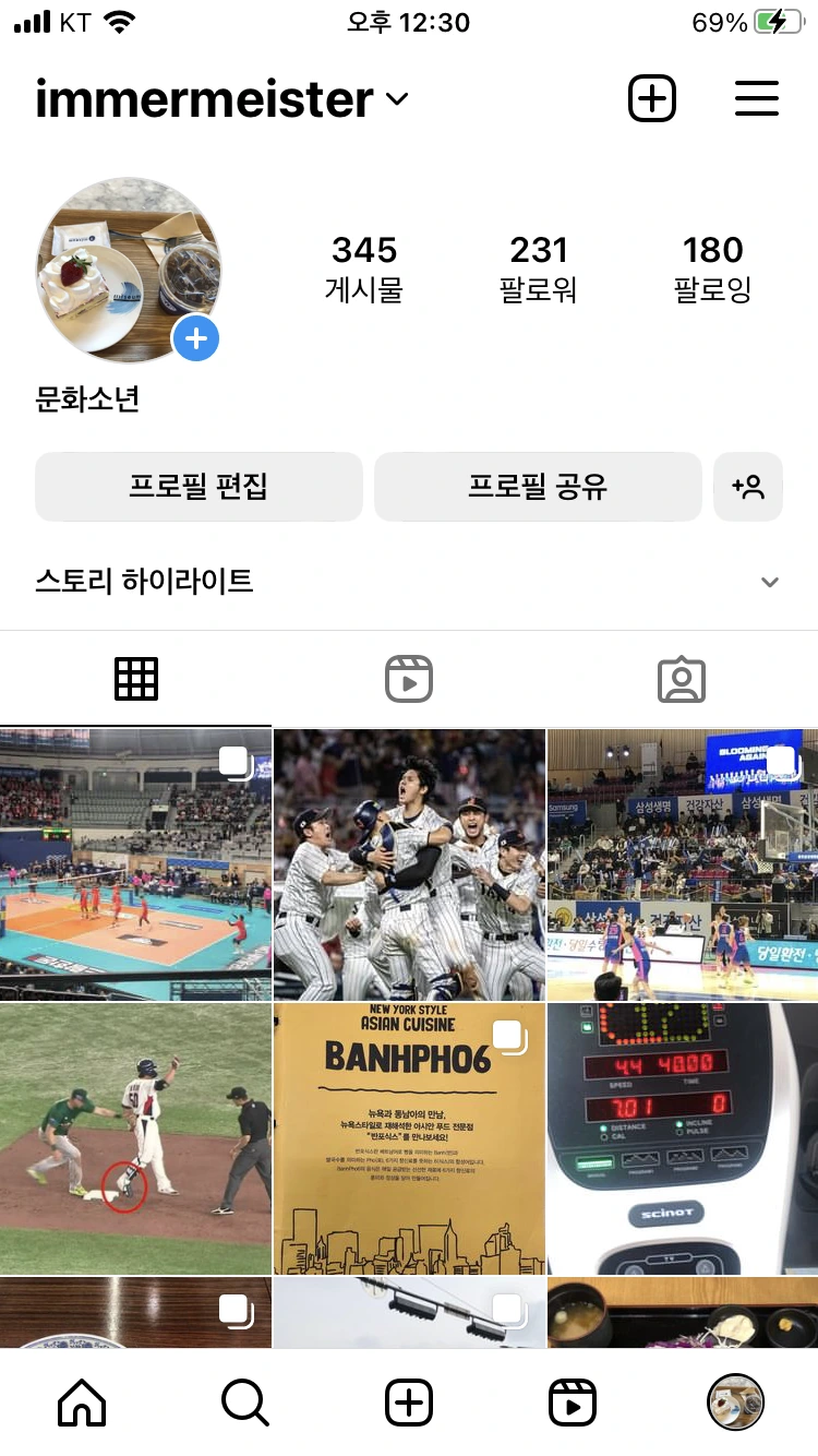 2017년부터 개인 인스타그램 계정을 운영하고 있다. 그 무렵 일상의 흔적을 남겨야겠다는 결심을 했었고 꾸준히 기록하고 생산물을 만들어보라는 ‘자기 계발러’들의 권유에 영향을 받은 것도 한 몫했다. 독서 후 서평, 영화(넷플릭스) 감상평, 스포츠 직관 후기, 맛집 리뷰 등이 주된 콘텐츠이며 짧더라도 개인적인 생각을 표현하려고 노력한다. 때문에 간단한 내용을 쓰더라도 업로드에 시간이 좀 걸리는 편이다.