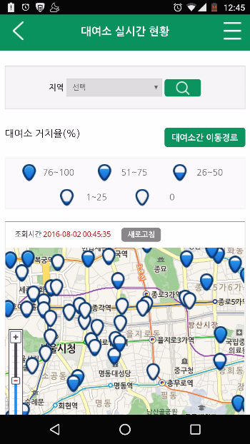 그냥 거치대가 몇 개 남았는지 바로 숫자로 알려주면 안되나요? 그리고 이용자의 위치를 중심으로 거치소를 보여주면 얼마나 좋을까...(사실 그렇게 의도한 듯한데 개발 시 문제가 있었는지 부정확한 위치가 나온다)