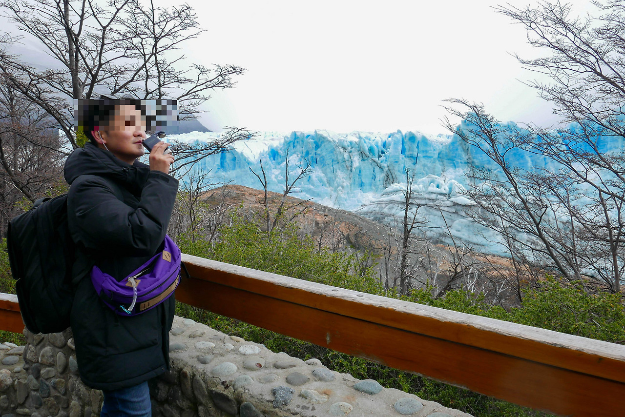 하지만 꼼꼼한 아르헨티나 파타고니아 국립공원 당국은 관강객들이 물가까지 내려가지 못하도록 철저하게 데크로 산책로를 만들어두고 나가지 못하도록 했다. 비수기라 사람도 적고 따로 적극적인 감시인이 붙어있지는 않았지만, 어글리 코리안이 될 수는 없었다. 나무가 워낙 빽빽하게 둘러있기도 하고, 계속 빙하 조각이 "쩡-" 소리를 내며 떨어지니 접근을 막는 게 당연해 보였다. (물가까지 간 사람이 빙하까지 가지 말란 법이 없으니)