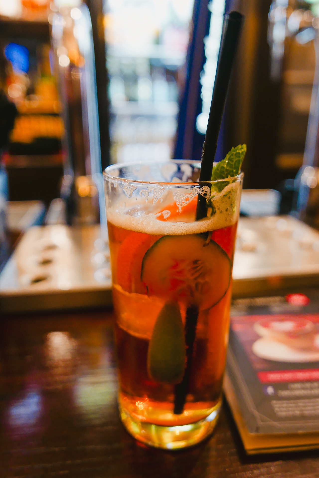 그리고 메뉴를 보니 핌스 컵이 위풍당당하게 있다. 바로 주문. 오이향과 오렌지향이 어우러지고 달콤 씁쓸한 상쾌함이 물씬 느껴진다. 싱그럽게 갈증을 해소하는 맛, 이맛이구나. 런던에 와서 마시라는 이유를 알았다.