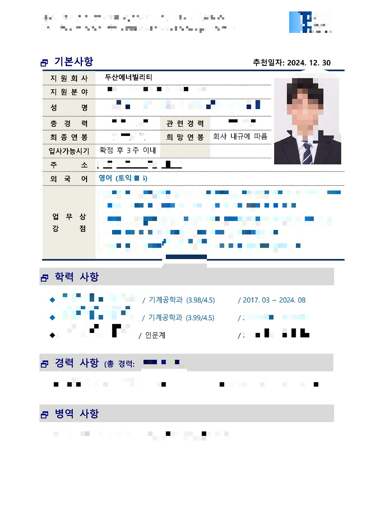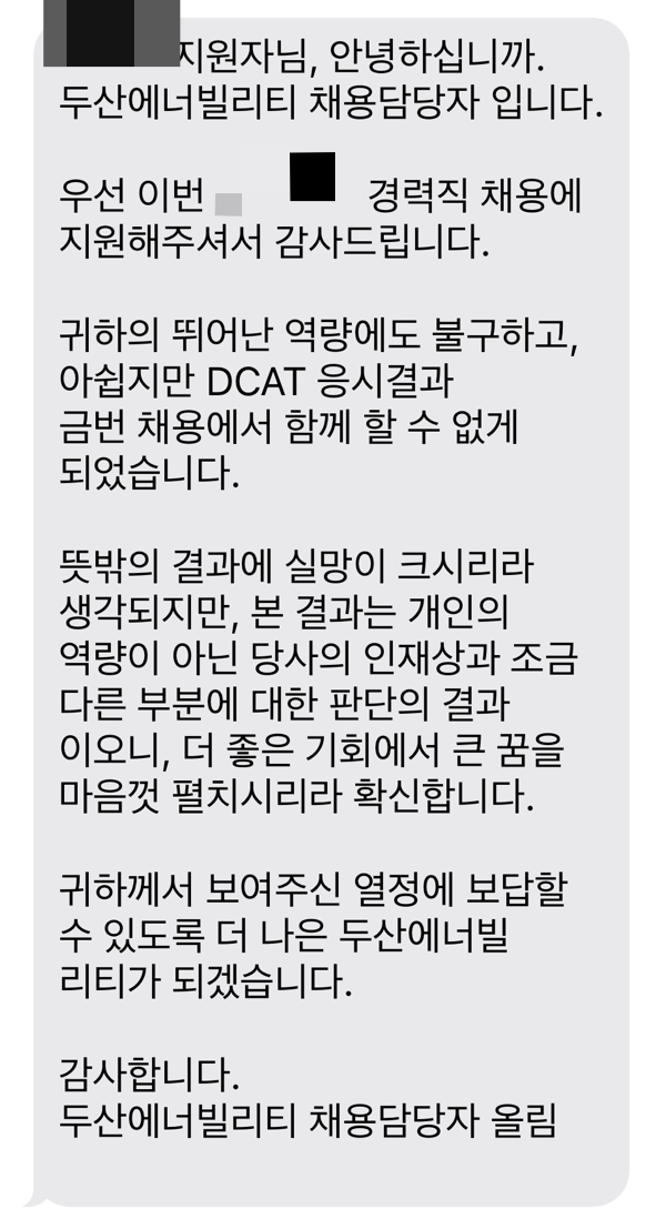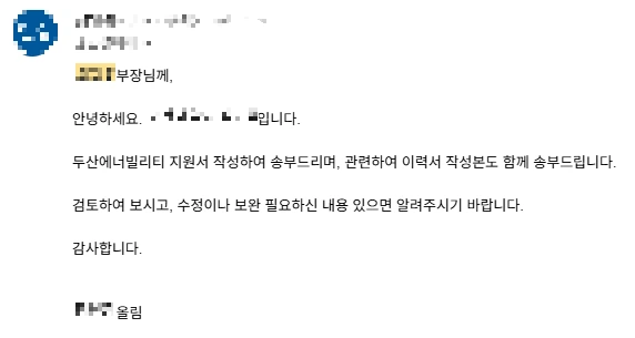 그렇게 원서 수정제출 후 이틀 뒤 두산에너빌리티에 내 지원서가 전달되었다.
