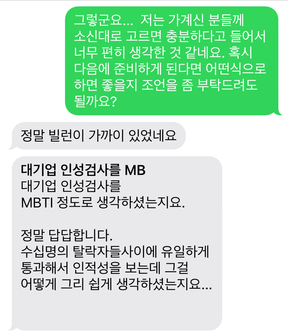 여하튼 시험을 무슨 MBTI 검사로 생각했냐는 비난까지 들으며 두산 채용 과정은 종료되었다.