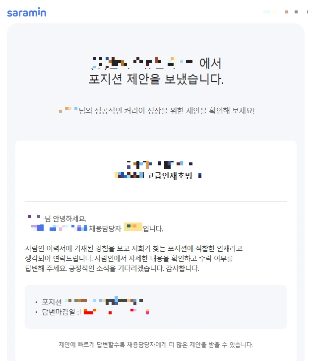 이번 헤드헌터는 사람인 채용플랫폼을 통해 나에게 제안을 보내주신 분이었다.