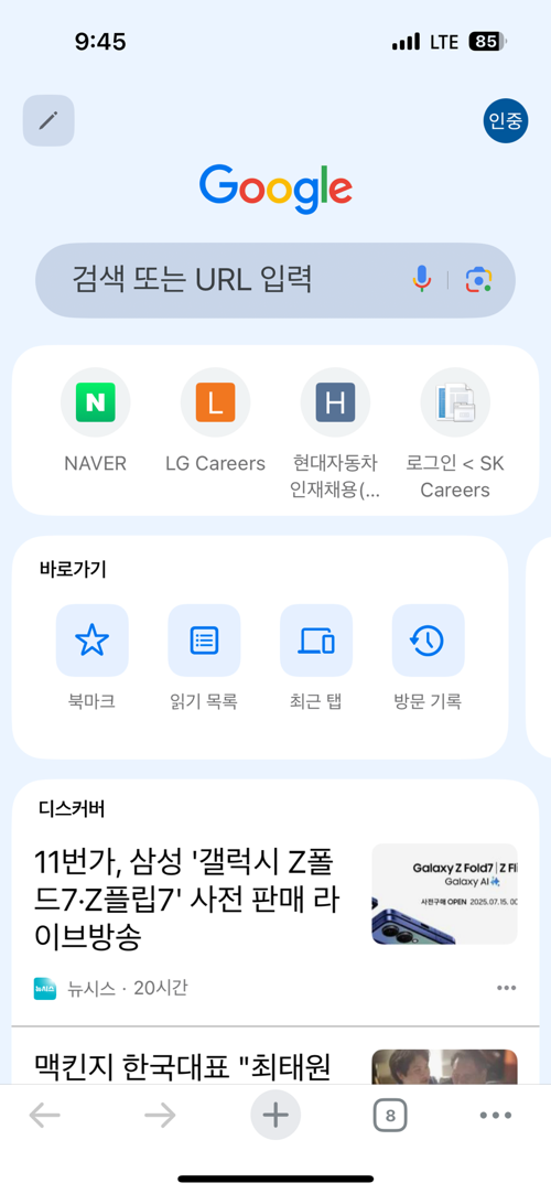 취업 준비 과정에서 나에게 생긴 습관 중 하나가 바로 ‘신문 기사 읽기‘다. 신문을 구독해서 읽기는 쉽지 않고 하나의 글만 읽게 되면 편향된 시각을 갖게 될 수 있으므로, 나는 구글 크롬 브라우저에서 제공하는 기사 디스커버를 추천한다.