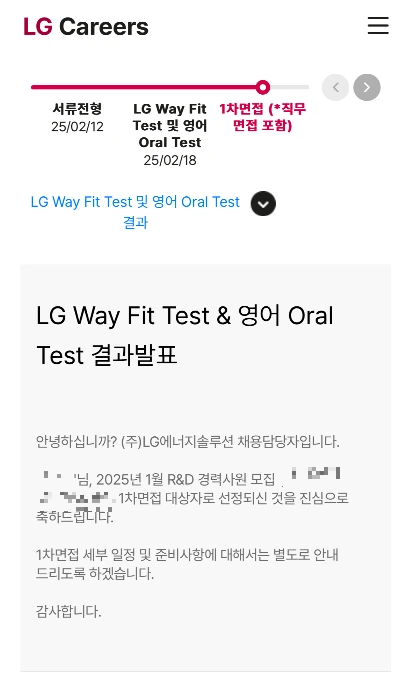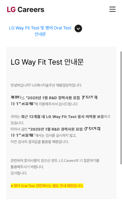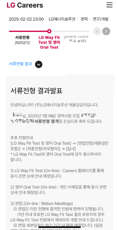 하지만 시험은 시험이고... 더 열심히 준비해야지 하고 체념해버린 3일 뒤, LG Careers에서 온 메일로 내 걱정은 종식됐다.