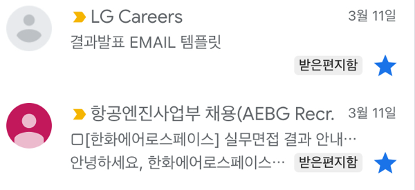 나는 두 회사의 1차 면접결과 메일을 와다다 받게 되었다.