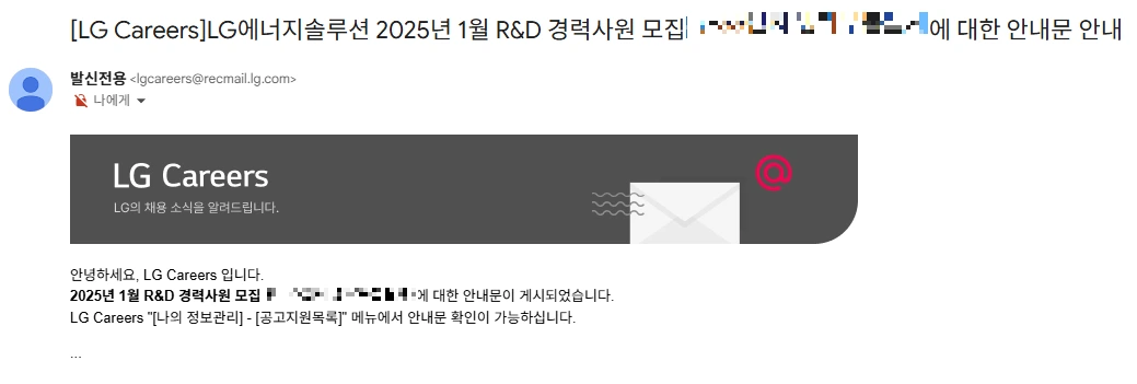 그러던 와중, 내가 매일 챙겨보단 LG Careers 홈페이지에 2025년 1월 R&D 경력사원 모집 공고가 올라왔다!