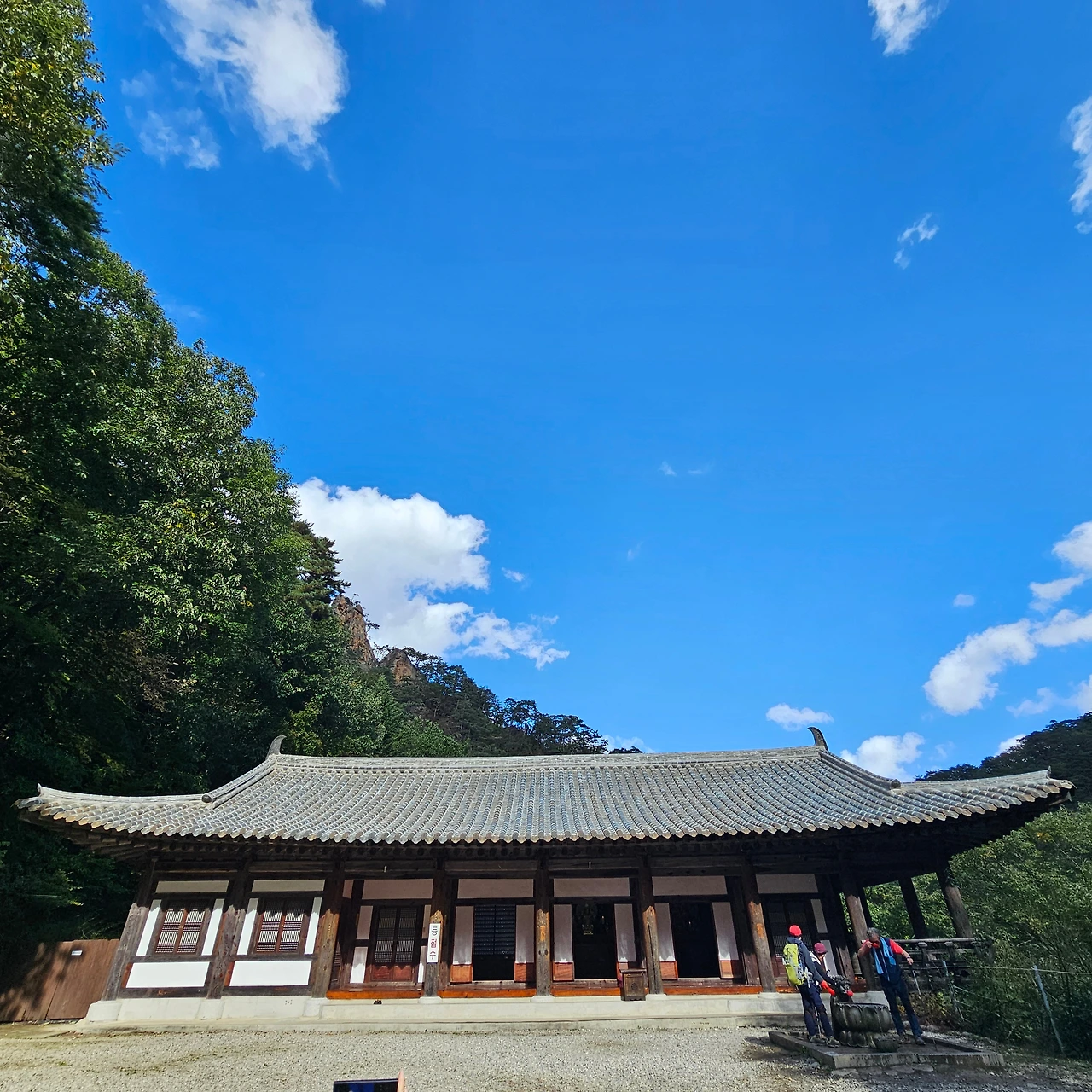 파란 하늘을 이고 선 오색석사 지붕 위에도
