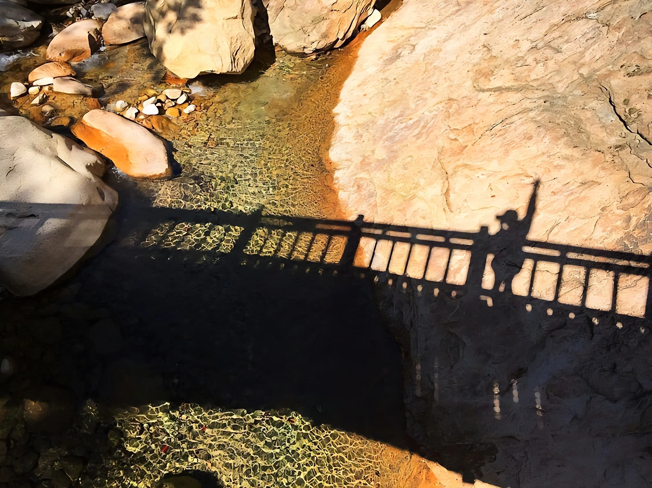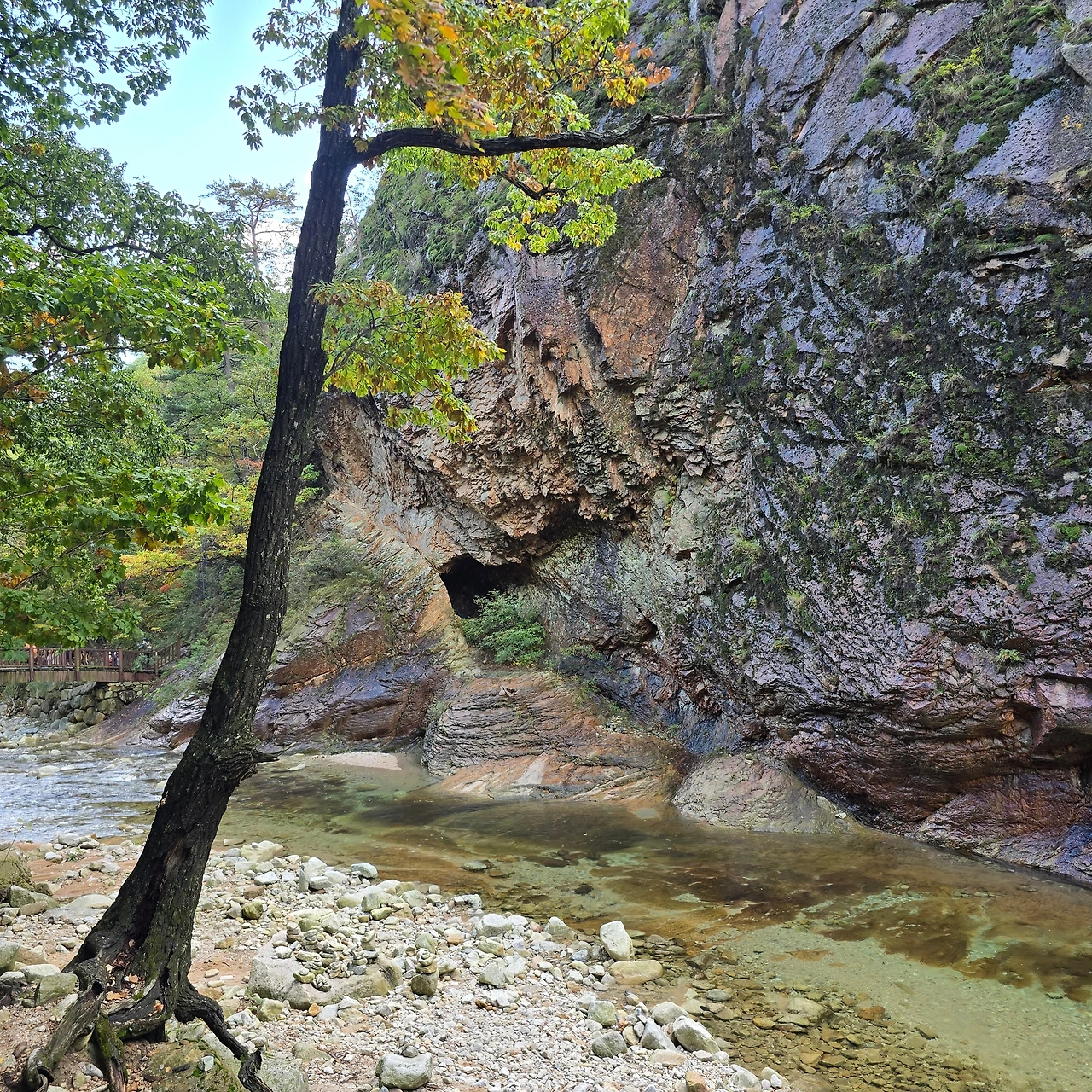 개울 건너편 누런 절벽 한 구석.