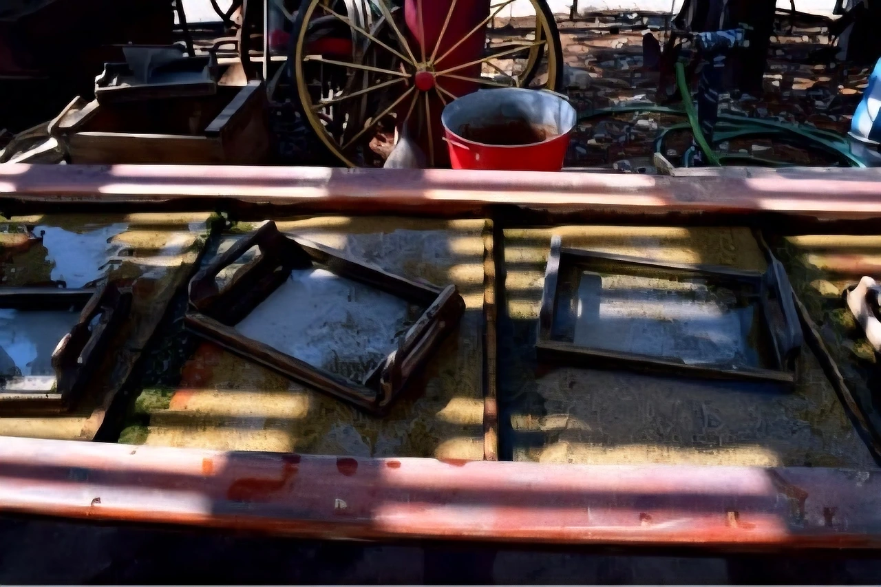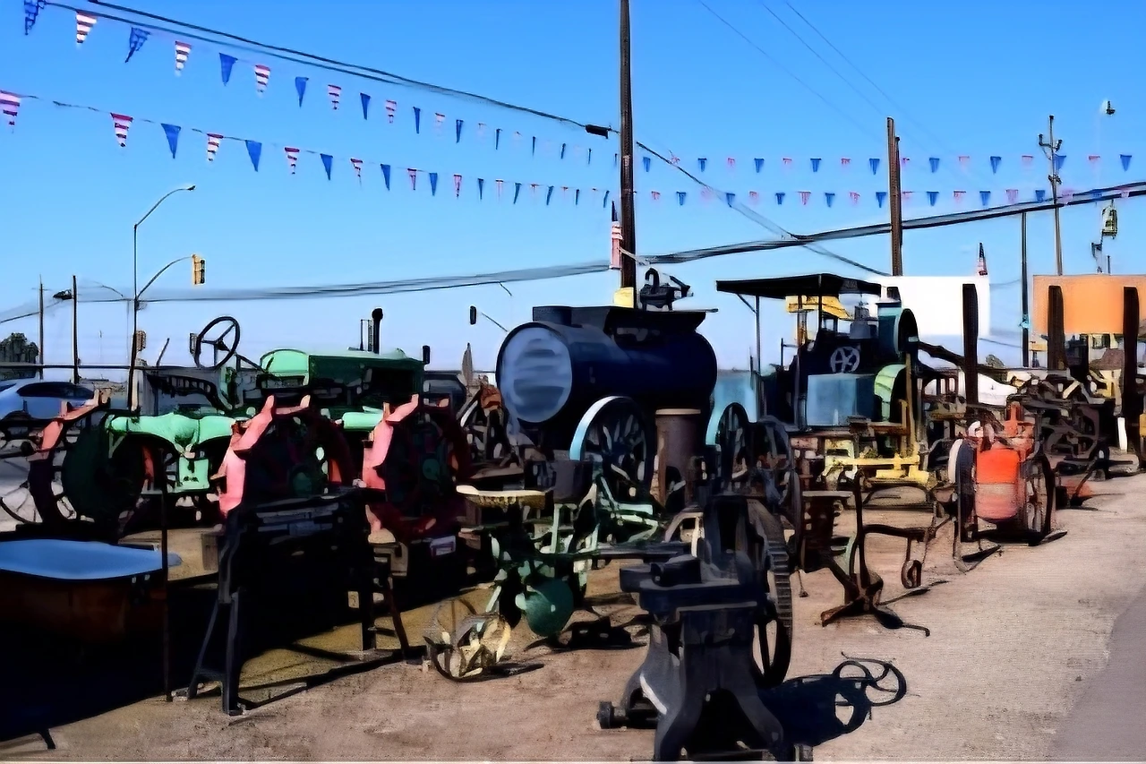 마당에 전시된 고물 농기구들과