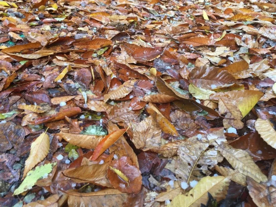 축축히 젖은 낙엽 위로