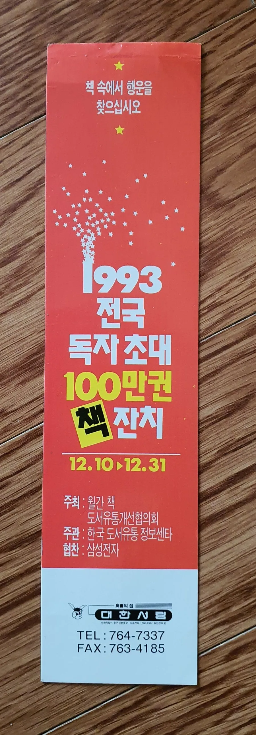 1993년, ‘대한서림’이라는 이름이 새겨진 종이 책갈피.