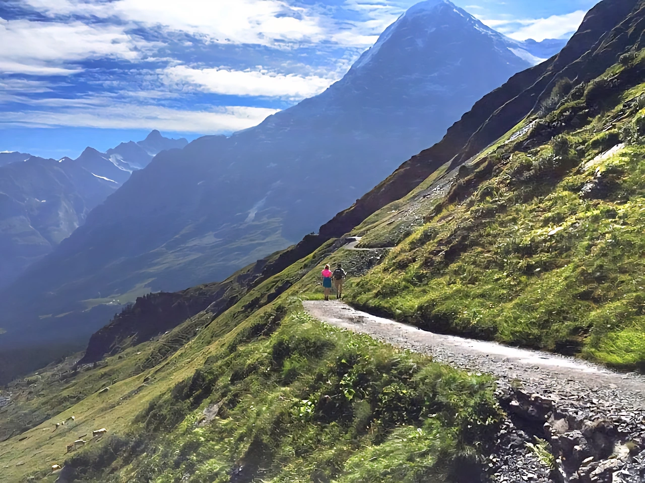 푸른 초원이 펼쳐진 트레킹 길 위에서는