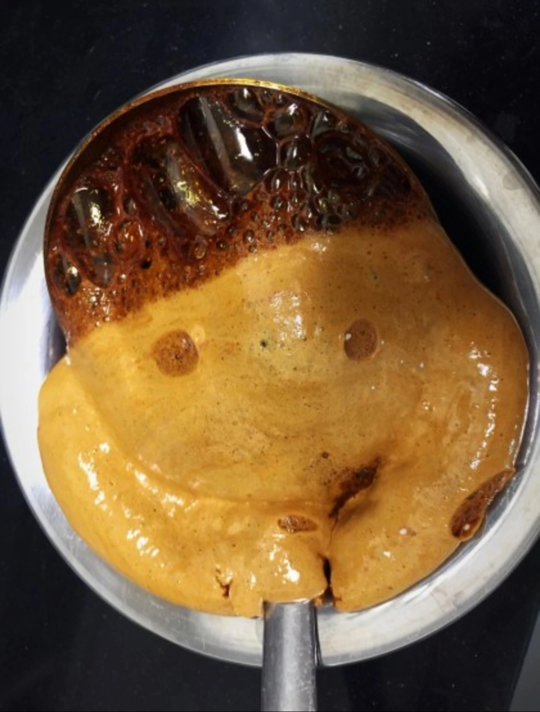 설탕을 국자 위에 올려 녹이고,
