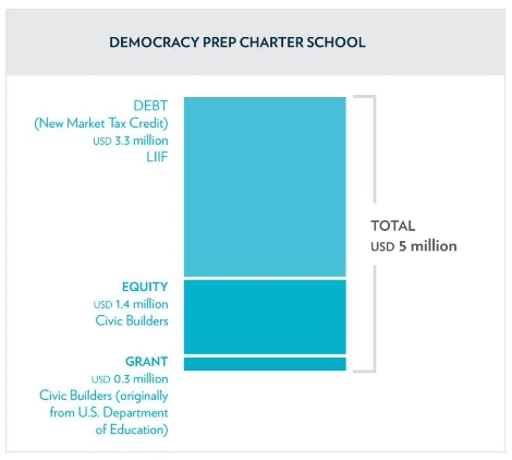 First Loss Capital이 실제로 활용된 사례를 보면 그 의의를 더 느낄 수 있습니다. Civic Builder는 양질의 Public Charter School**을 제공하여 지역 커뮤니티를 활성화하고 공교육 위기를 해결하는 기관입니다. 뉴욕 할렘 지역을 대상으로 하는 프로젝트에 미국 교육부로부터 받은 Grant의 일부인 30만 달러를 First loss capital로 투입하고 Civic Builder의 자체 자본금 140만 달러를 지분으로 투입했습니다.