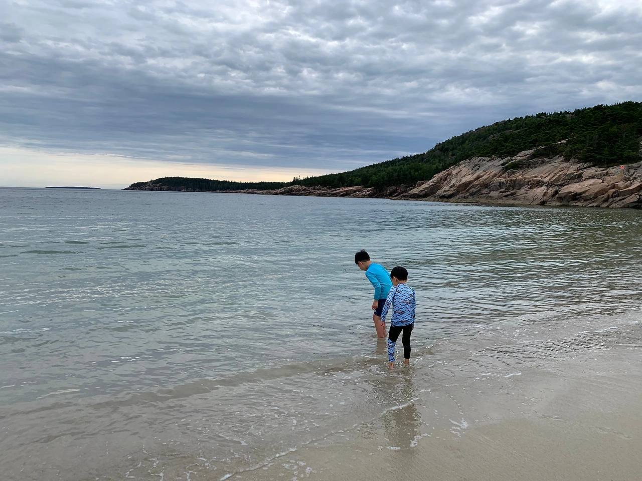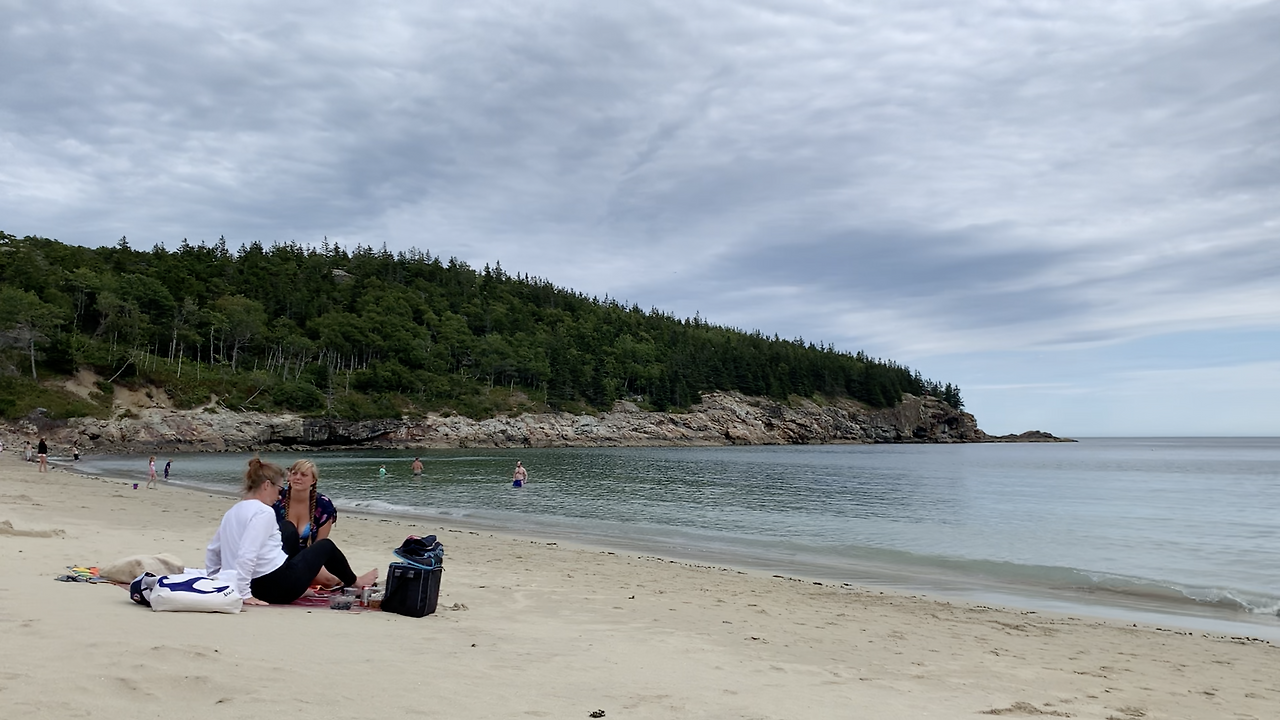 그리하여 다음으로 들른 곳이 샌드 비치(Sand Beach).여기서 아이들을 좀 풀어놓아야 했다. 아카디아의 장점 중 하나는 바다와 산, 호수를 모두 경험할 수 있다는 점이다. 공원에 들어서면서부터 보이는 크고 작은 호수에 감탄하다 보면 돌산이, 그리고 바다가 나온다. 샌드 비치 주차장은 이미 만원이었다. 다행히도 찻길 한쪽에 주차할 수 있다는 사인이 있어 비탈길에 차를 세우고 서둘러 비치를 향해 걸어갔다.