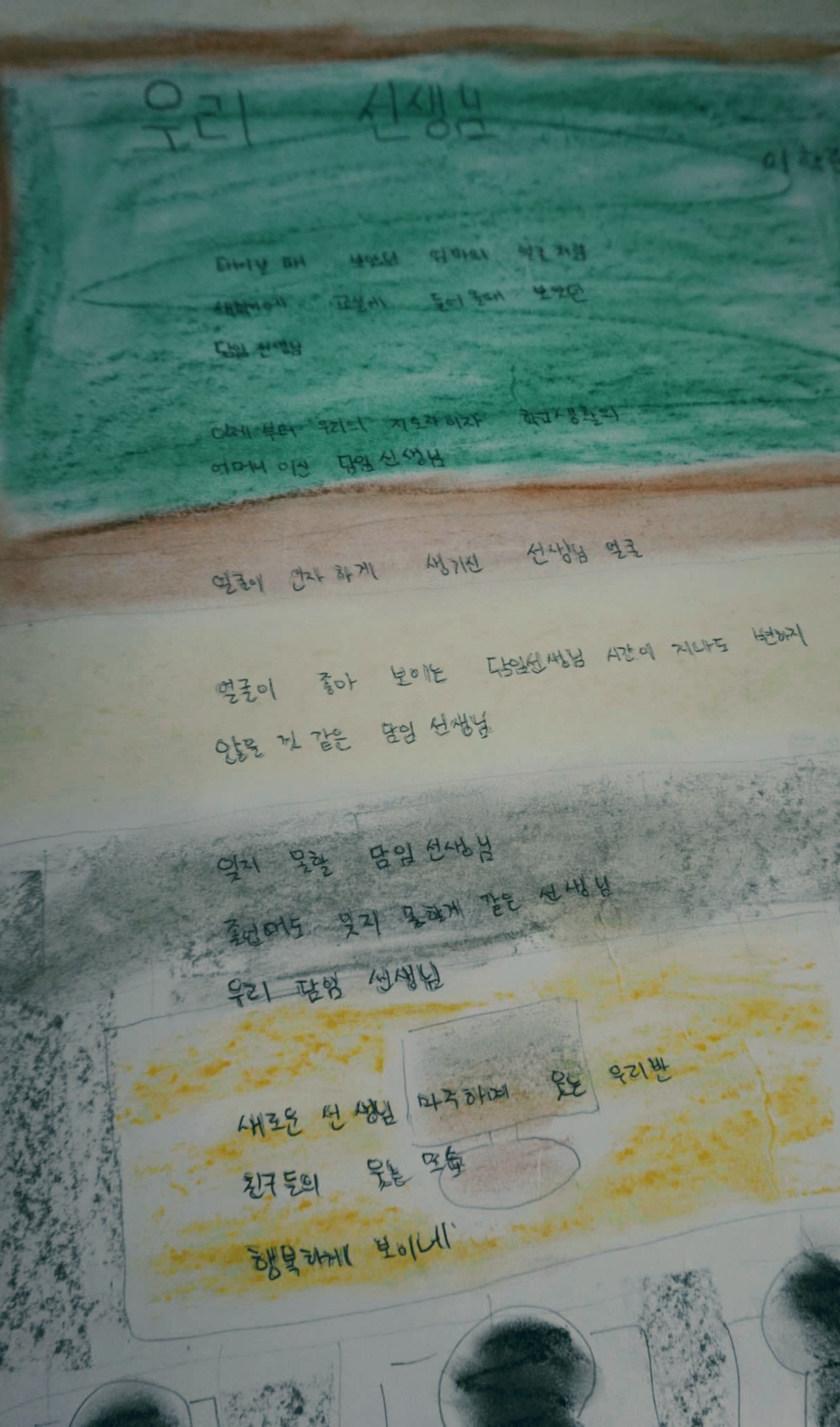 선생님이 1년을 다 채우지 못하고 너희와 헤어지게 되어 참 아쉽다. 그렇지만 세상에 일어나는 모든 일은 절대적으로 나쁜 일도, 절대적으로 좋은 일도 없는 것 같아. 헤어져서 아쉬우니 나쁜 일 같지만 아쉬워서 더 특별하게 우리의 추억들을 간직할 테니 좋은 일이기도 하지 않을까?