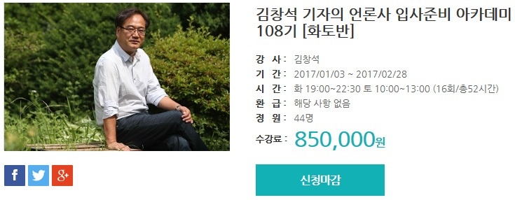 실제로 이 수업의 결과물은 매우 화려하다. 창석샘 수강신청 홈페이지를 보면 연도별 입사자 명단이 쭈욱 나열되어 있다. 실로 어머어마하다. KBS부터 저 멀리 지방 언론사까지. 전국에서 창석샘 제자들이 기자로 활동하고 있다. 그래서 효과가 없다고는 말 못 한다.