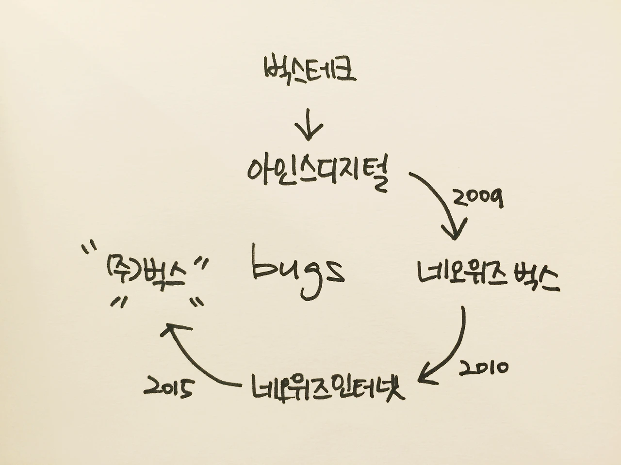 “벅스←네오위즈인터넷←아인스디지털즈←벅스테크”
