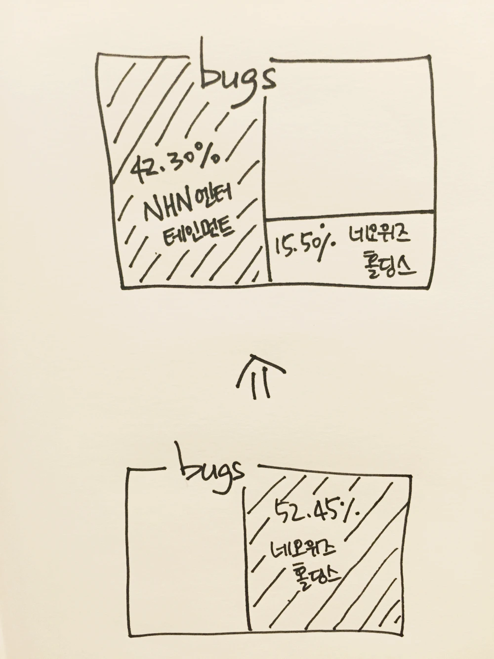 그리고 2015년 6월 네오위즈인터넷의 최대주주인 네오위즈홀딩스는 이웃사촌 NHN엔터테인먼트에 지분 일부를 팔았습니다. 최대주주의 자리를 NHN엔터테인먼트에 물려주었습니다. (이 얘기는 다음에)