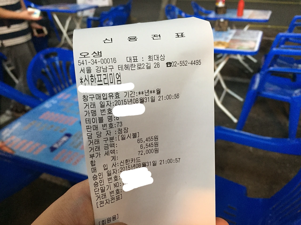 그런데 카드기의 서명판에 7만2천원이 찍혔다. 직원은 저도 모르게 "서명하세요"라고 말했다.