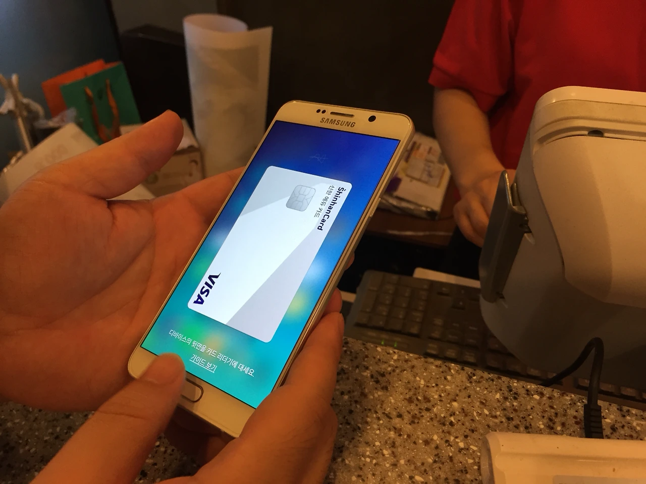 문제는, 지금 한국에서 삼성페이를 쓰는 게(노트5에서) 그리 어렵지 않다는 것. 초초초간단하다. 신용카드를 긁듯이 신용카드 단말기에 폰을 갖다 대면 끝. 결제하기 전 한도 확인만 하면 된다.