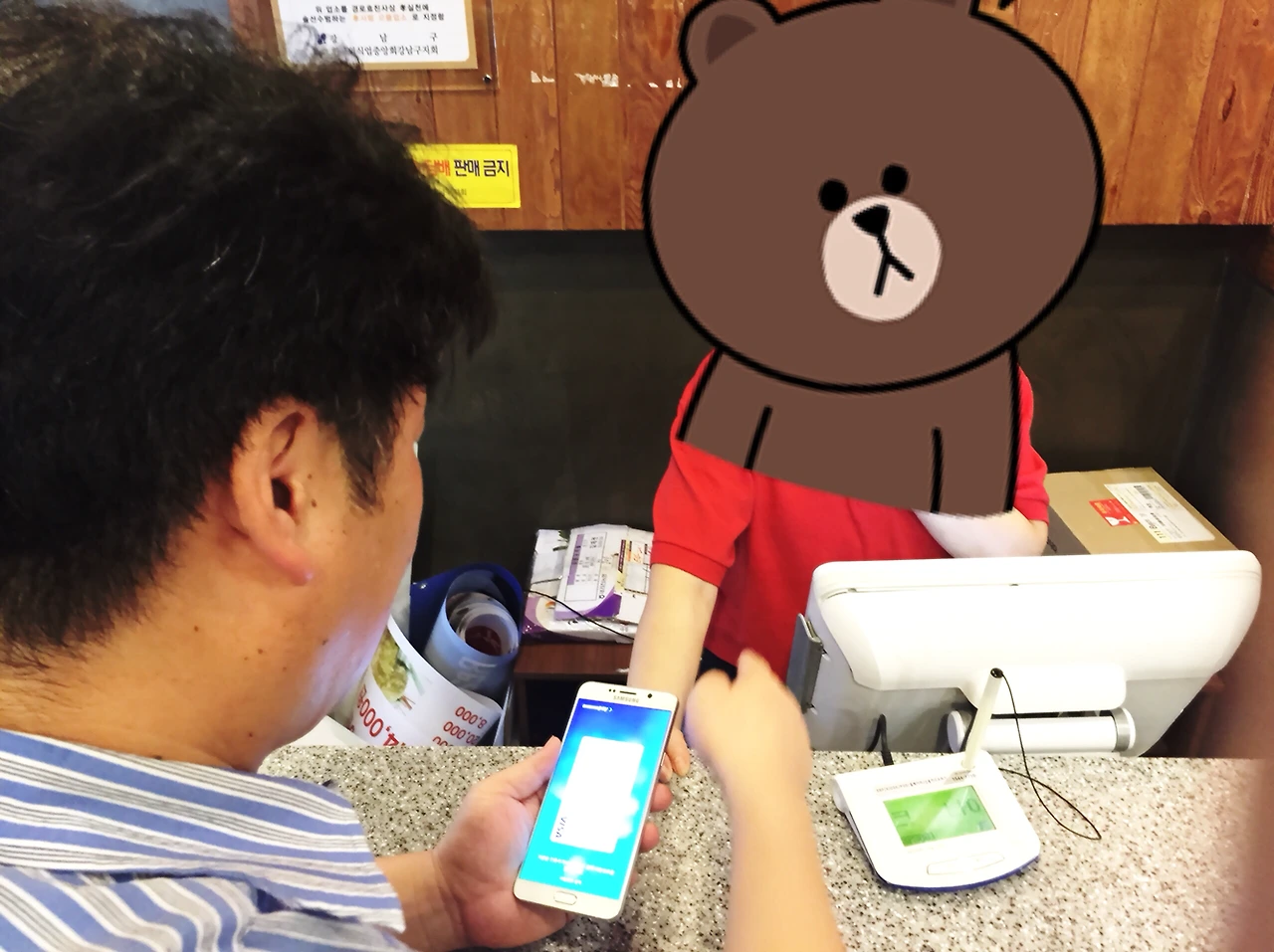 POS 화면을 쭉 지켜봤는데 폰을 신용카드 긁는 데에 대고 잠깐 시간이 흐르자 신용카드 정보의 빈칸이 주르륵 채워졌다.
