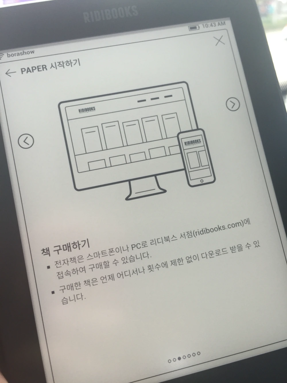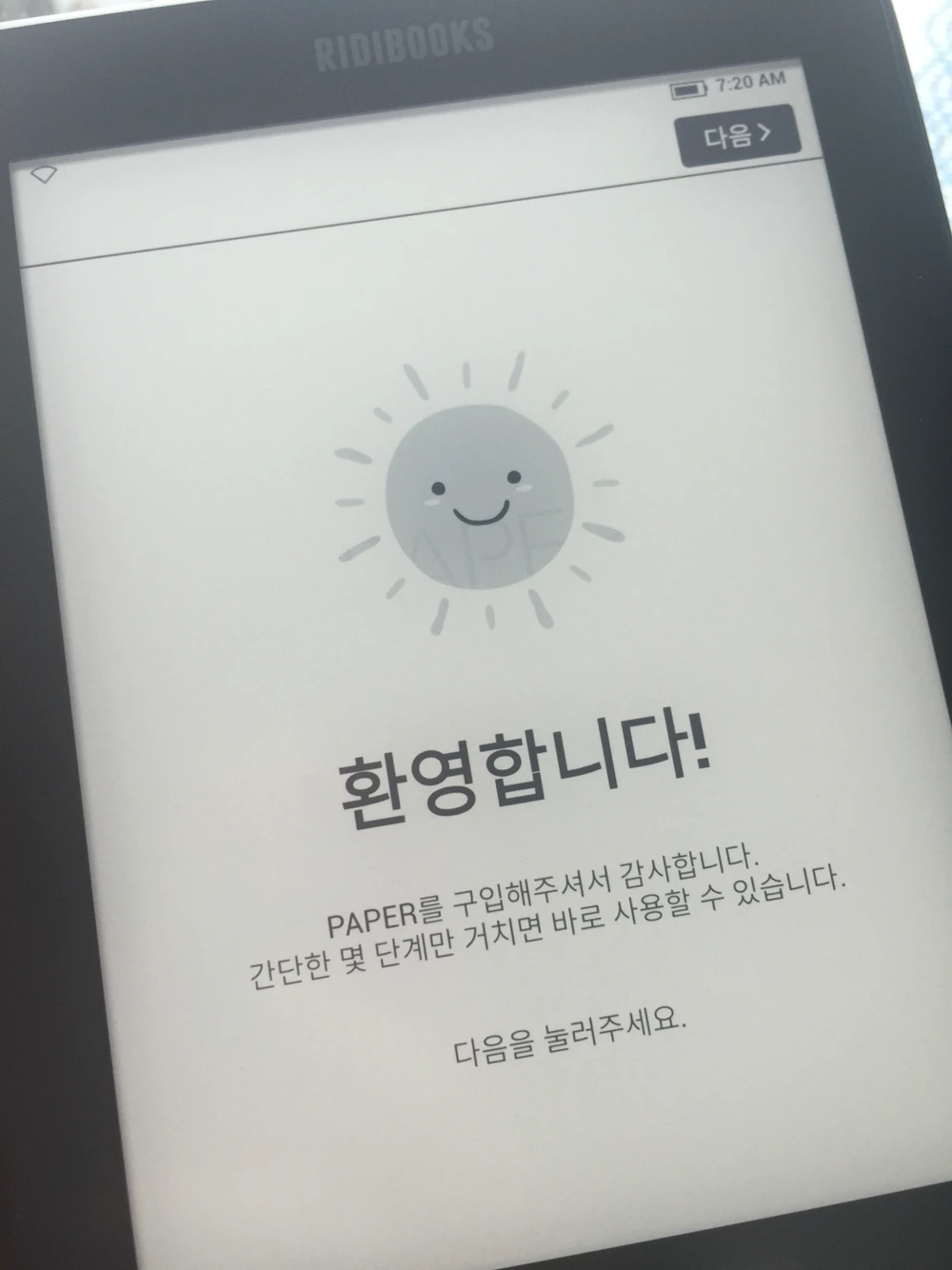 한국이퍼브의 단말기 이름은 '크레마 카르타'이고 리디북스 단말기의 이름은 '리디북스 페이퍼'입니다. 리디북스 페이퍼 라이트의 출시일은 10월 5일(이날부터 리디북스의 쇼핑몰인 리디샵에서 구매 가능)인데 리디북스가 출시 전 살짝 공개했습니다. 저는 제 직업 덕분에 한 대 미리 써 볼 수 있게 되었는데요. 보시죠.