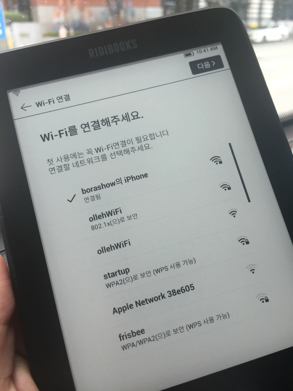 와이파이를 쓸 수 있는 환경을 갖추고서 켜면...